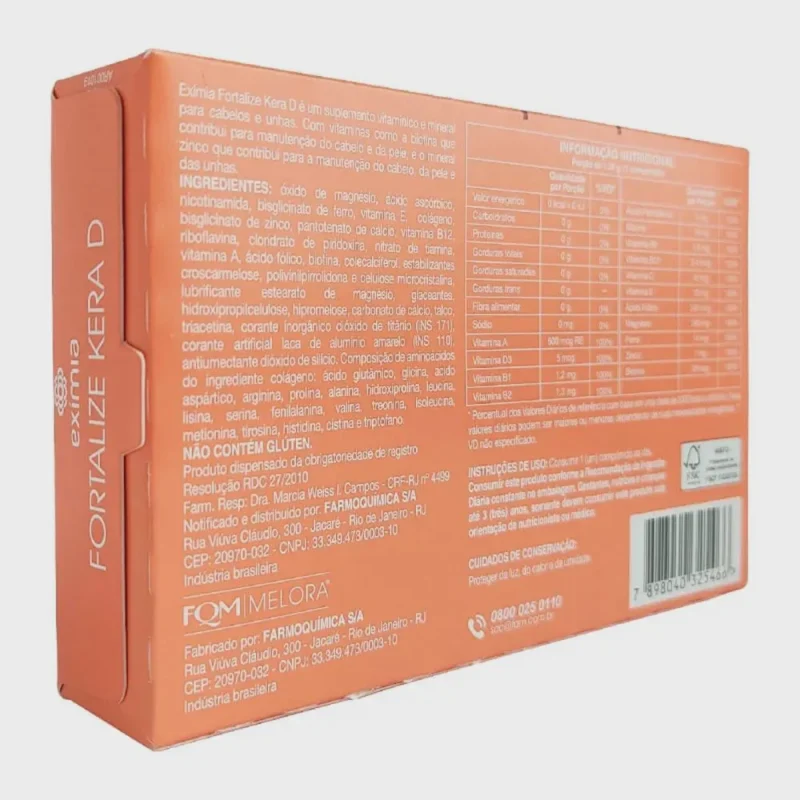 Em até 1x de R$71,44 sem jurosEm até 12x de R$6,76 com juros À vistaR$64,30no PixEximia Fortalize Kera D 30 comprimidos